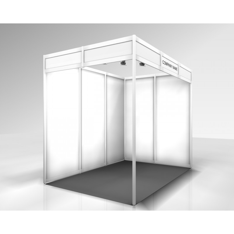 Messesystem Profile und Füllflächen weiß, Blende an den offenen Standseiten (Höhe 35 cm)